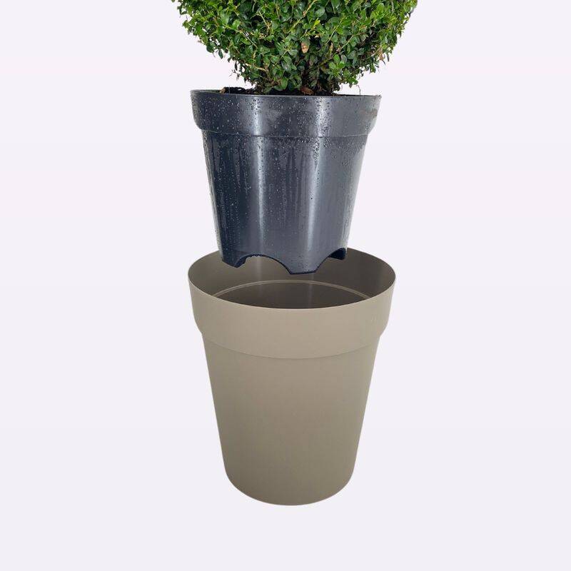 De meerwaarde pot is doordacht ontworpen met een waterreservoir van 750ml (potmaat32). Dit slimme ontwerp zorgt ervoor dat het water zich verzamelt in de onderste rand van de pot. Dankzij deze innovatieve oplossing blijft de buxus langer fris en gezond, zowel tijdens het transport als in het tuincentrum en op het terras van de consument. Onze buxusplanten zijn dus niet alleen prachtig om te zien, maar ook praktisch in hun onderhoud.